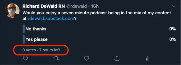 The compromise I am making is that the podcast will be, for now, a companion to my content here. I will record them before I publish here so I can put a link to the podcast at the bottom, where it will be easy to both find and ignore.