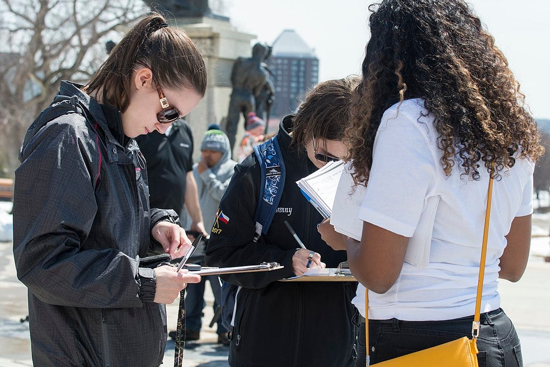 By Fibonacci Blue from Minnesota, USA - Voter registration at National School Walkout against gun violence